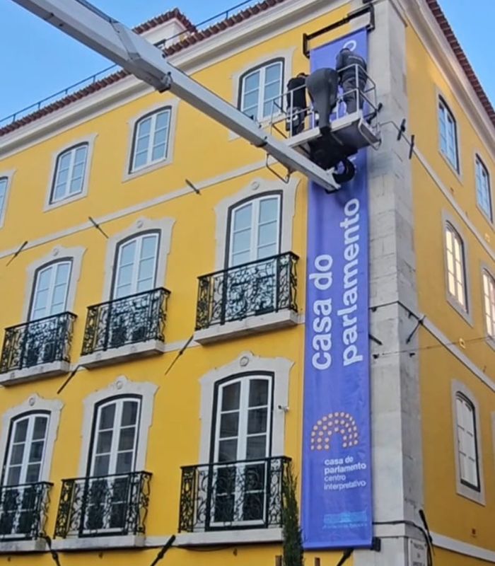 Confecção de bandeiras personalizadas (de interior e exterior) com materiais duráveis e impressão resistente ao sol e à chuva.