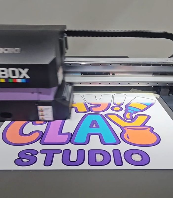 Impressão direta sobre múltiplos materiais com alta fidelidade de cor e durabilidade.