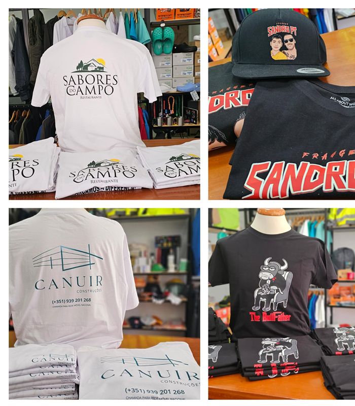 Impressão Direct-to-Film feita à medida, com designs exclusivos e aplicação precisa em diversos tecidos, adaptada à sua identidade.