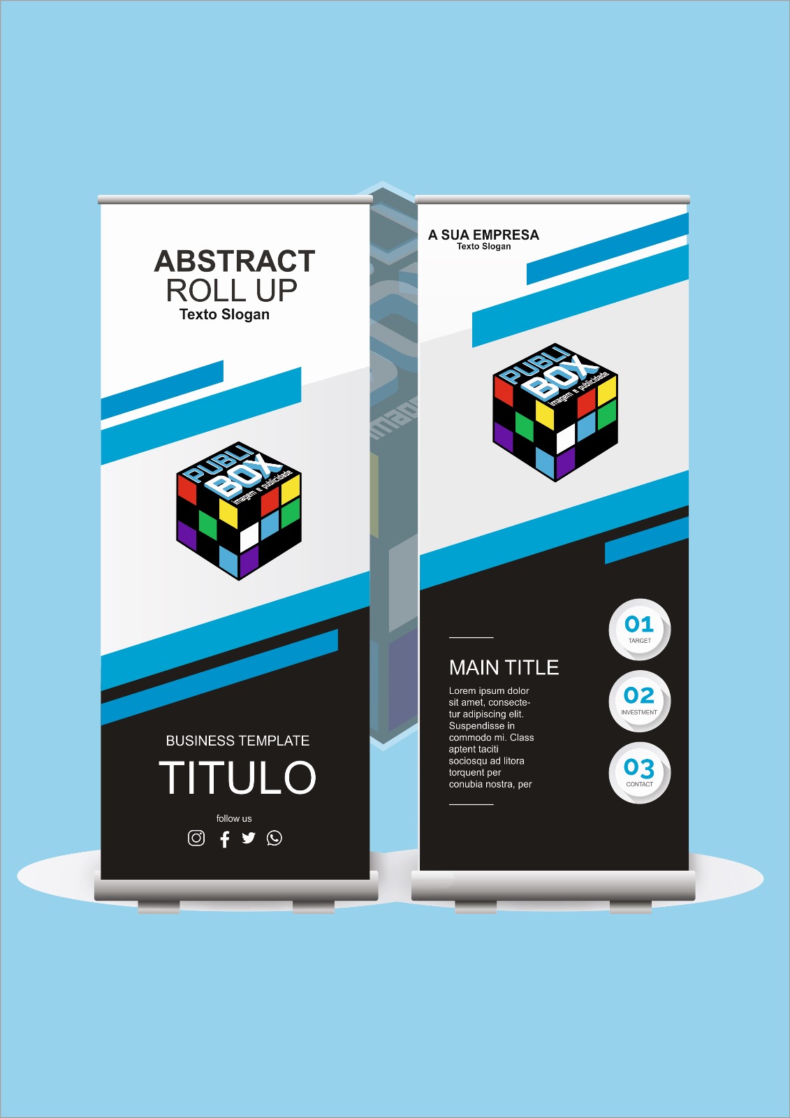 Produção de displays portáteis e retráteis de alta qualidade para feiras, eventos e pontos de venda, com montagem rápida.